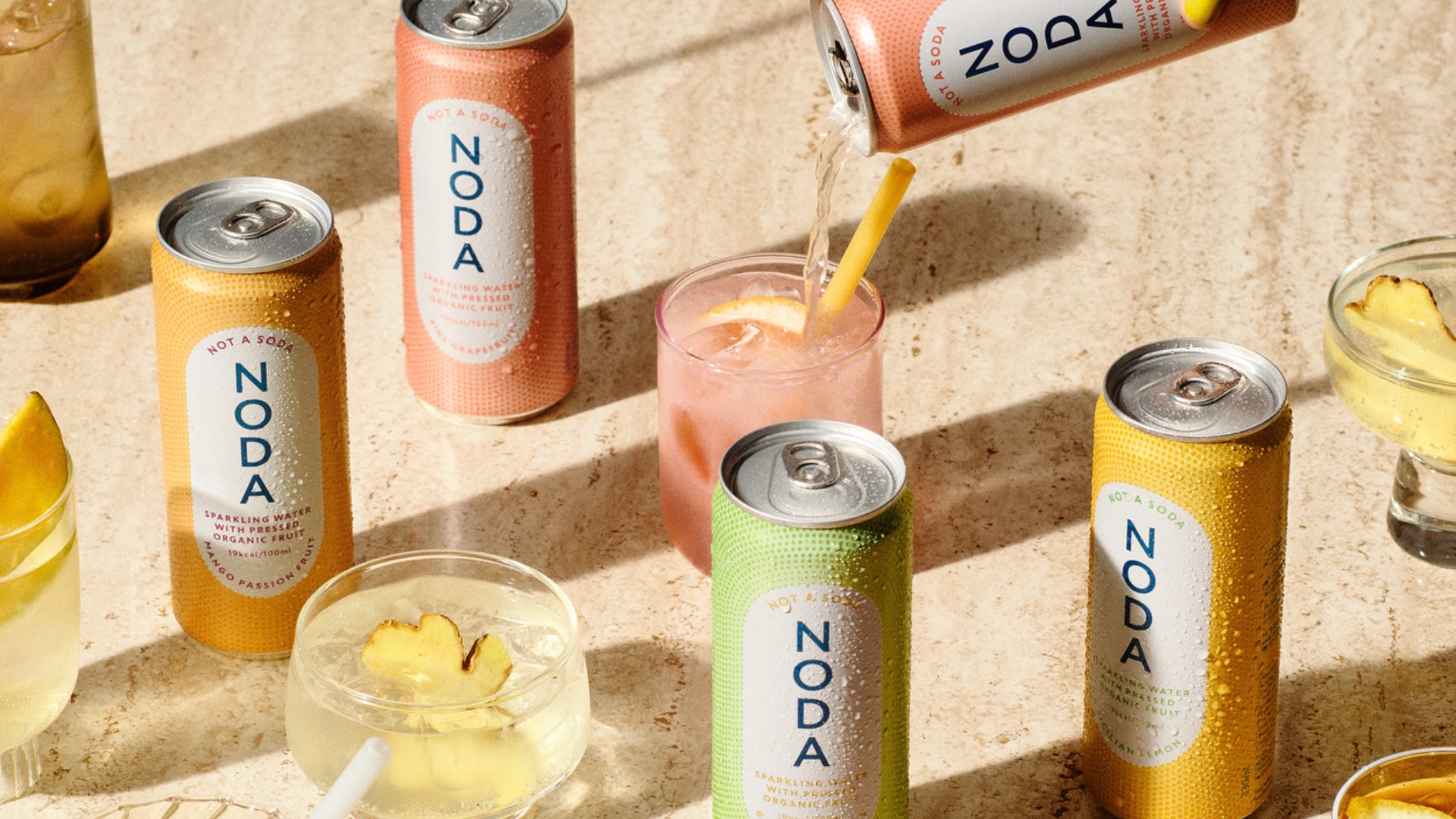 Noda blev startet i 202 af Mette og Norman Hardie, i en tid hvor der var en spændende udvikling i gang indenfor produktion af fødevarer – fokus var på indhold, på ægte varer, sundhed og bæredygtig produktion. Men vi kunne ikke finde drikkevarer der passede. Derfor lavede vi NODA. En læskedrik med bobler der giver friskhed, med 100% presset frugt der giver en dejlig smag, men som er uden tilsætningsstoffer og raffineret sukker. NODA er det sunde alternativ til traditionel sodavand og med en miljøvenlig profil