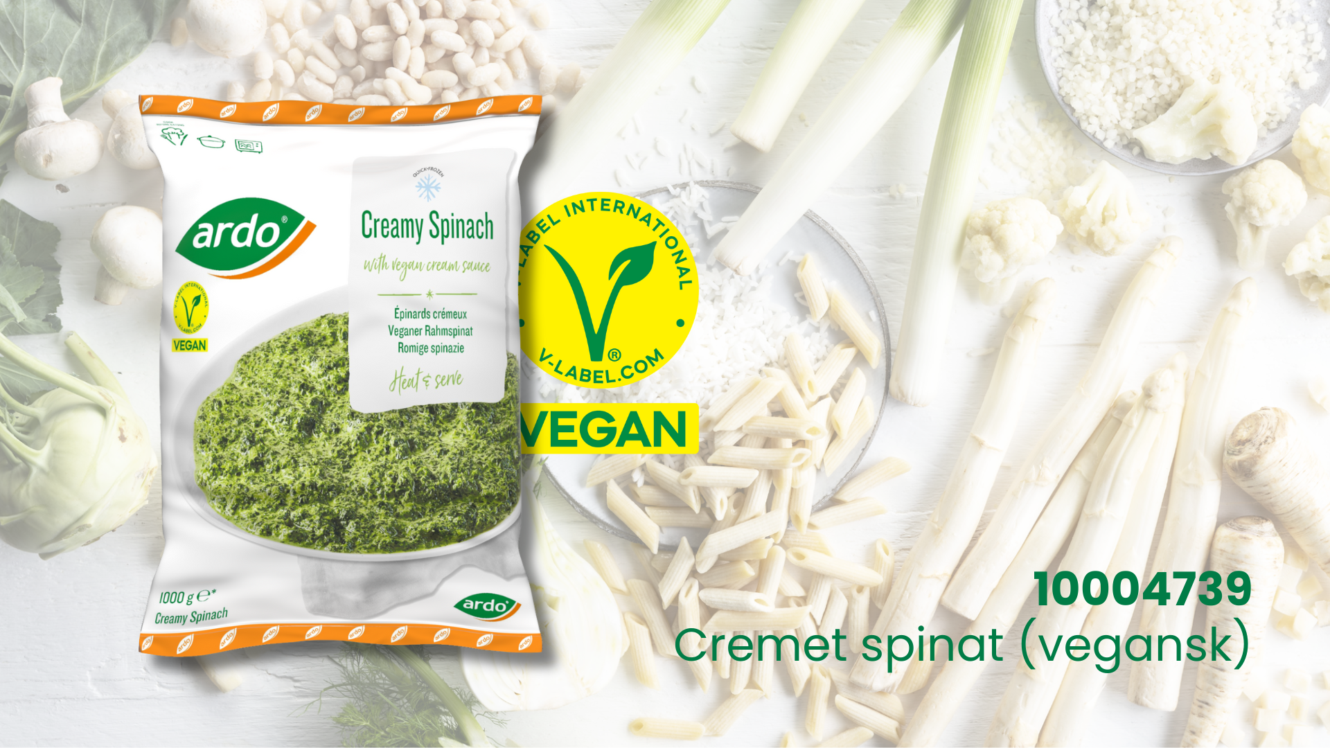 Cremet spinat er 𝘃𝗲𝗴𝗮𝗻𝘀𝗸 og har en rig, fløjlsblød tekstur med fine noter af muskatnød og hvid peber.