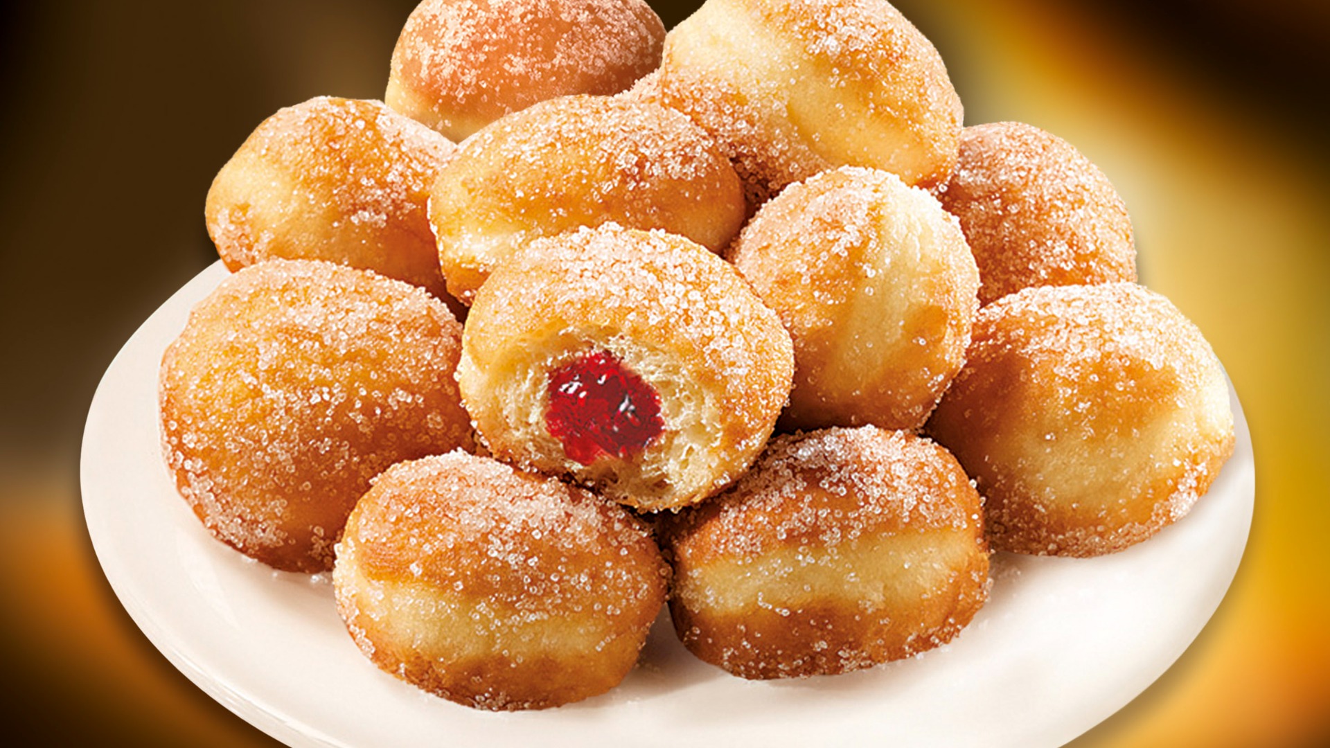 Bløde miniberlinere med hindbærfyld, strøet med fint sukker. Færdigtilberedte og klar til servering. Kan også kort opvarmes for endnu bedre smagsoplevelse.