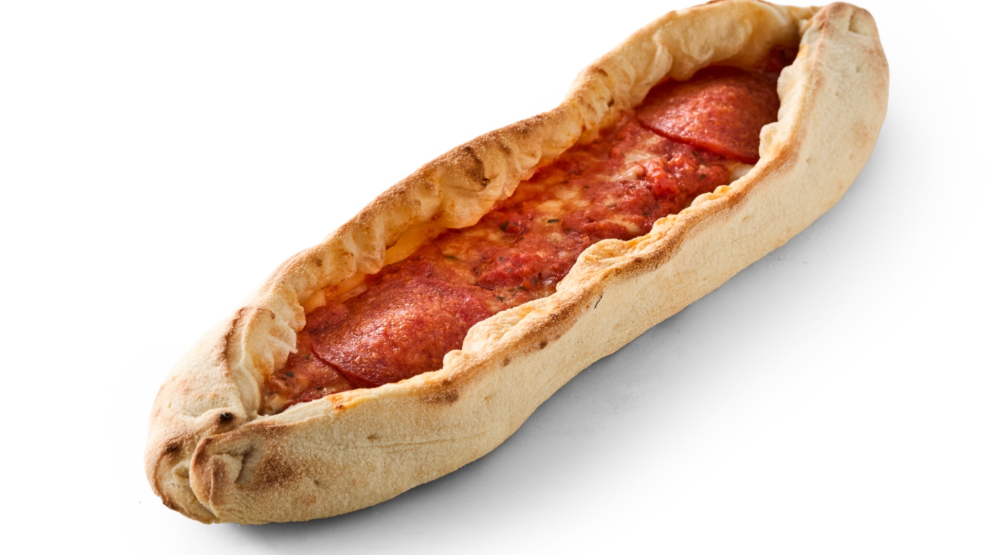 En Barchetta med lækkert fyld af salami og mozzarellaost. Ordet barchetta der betyder ”lille båd” beskriver serveringsstilen på denne pizzasnack. Barchettaen har høje og luftige sider og en mere koncentreret smag midt på. Sprød og lækker til at tage med på farten eller nyde sammen med en god salat.
