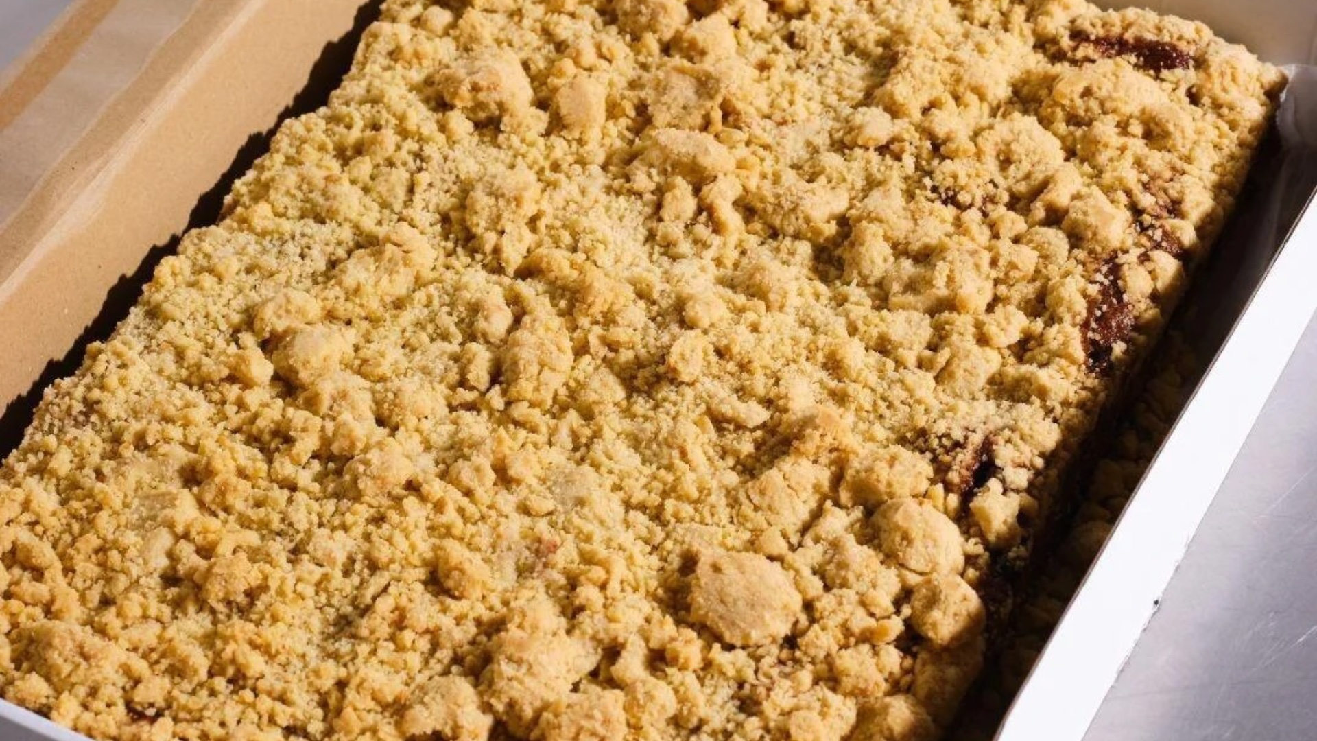 Blød og krydret kage med frisk overskudsæble og kanel. Toppet med sprød crumble.