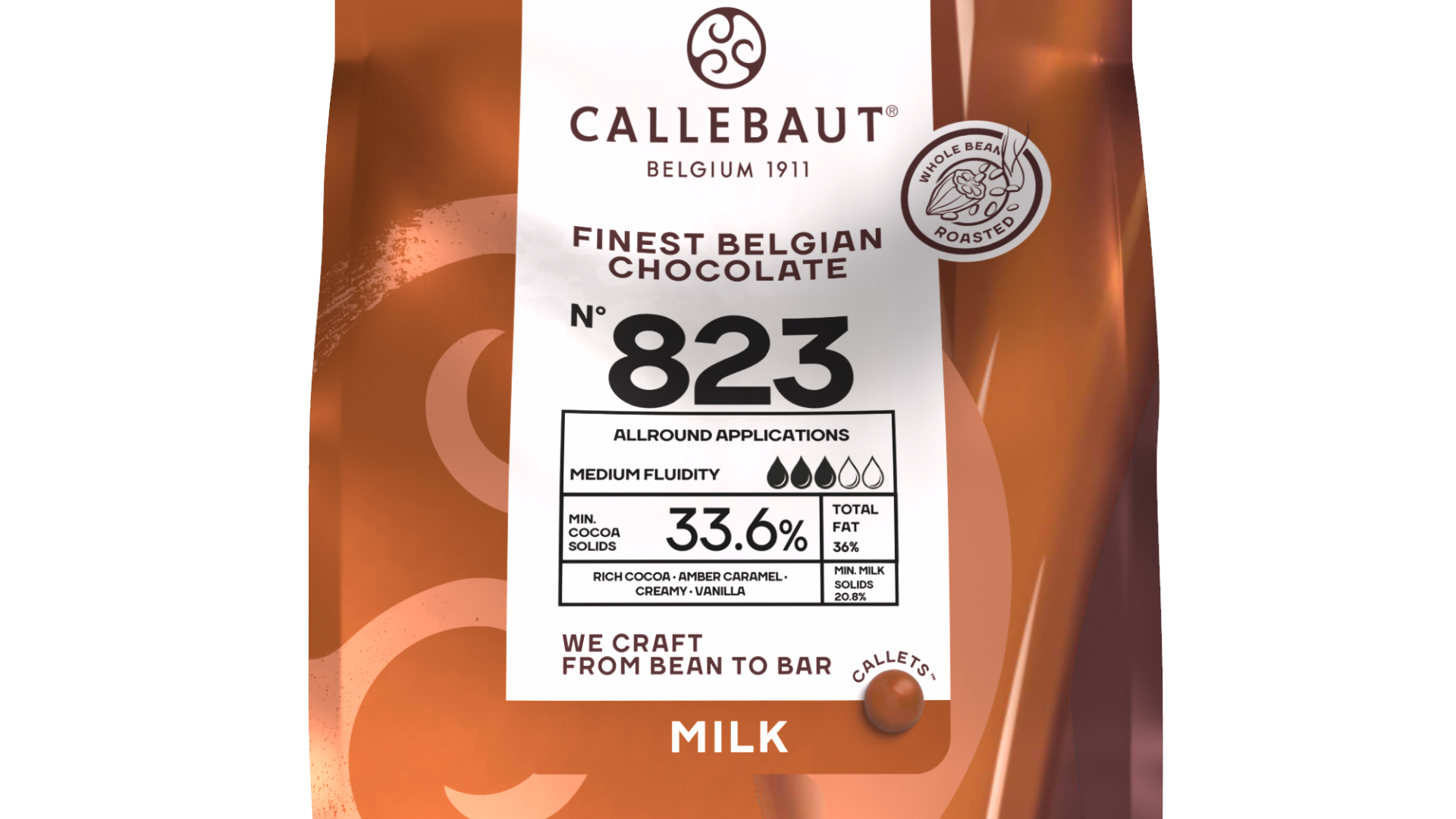 Hvis du leder efter en ikonisk mælkechokolade, som foretrækkes af kokke verden over, er Opskrift nr. 823 det oplagte valg. Forestil dig en dyb, varm farve, en blød kakaoprofil og søde, karamelliserede noter, der fuldender oplevelsen.