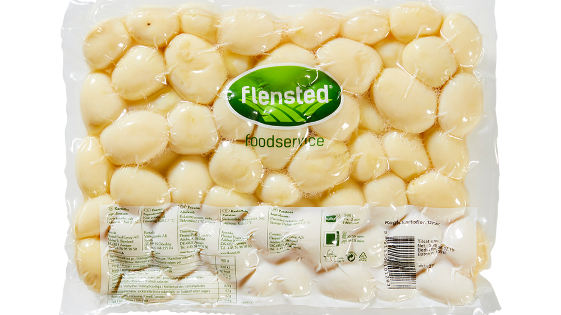 Diner-kartofler er forkogte, skrællede kartofler i ensartet størrelse (35–45 mm), udviklet til storkøkkener, hvor effektivitet og stabil kvalitet er afgørende. Den milde, rene kartoffelsmag og faste struktur gør dem ideelle som tilbehør til både kød, fisk og grønt – uanset om de serveres klassisk, vendes i krydderier eller steges sprøde.
