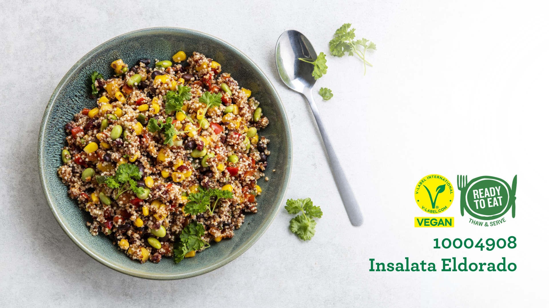 Ardo Insalata Eldorado er en ready to eat, vegansk og glutenfri salatblanding bestående af hvid og rød quinoa, edamame-bønner, sorte bønner, majs, grillet rød peber, mango, tomat i tern, forårsløg og tørrede tranebær. Den friske og krydrede syrlighed fra Thousand Island-dressing fuldender salaten med både smag og farve.