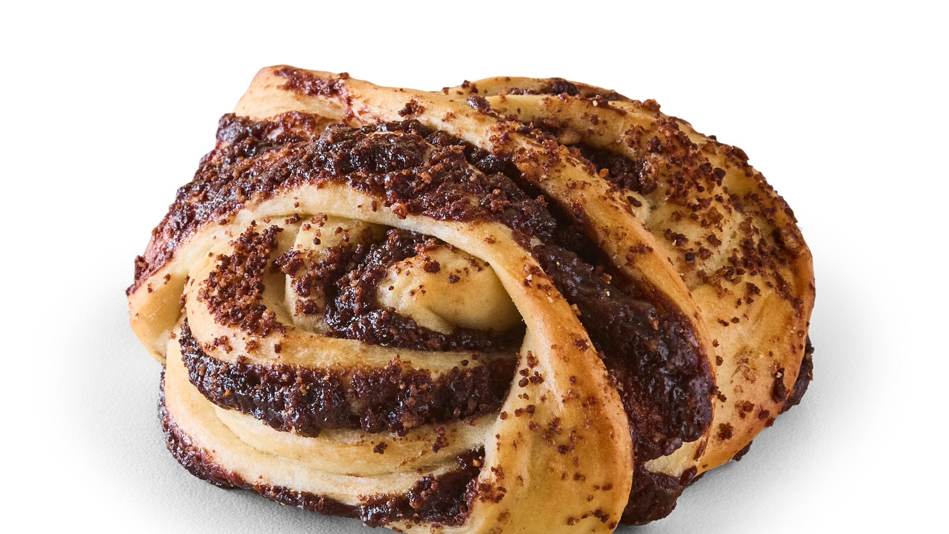 Denne klassiske Kakaosnurre er bagt på vores velkendte bløddej med mild kakao-hasselnød fyld. Den smukke spiralform er unik fra snurre til snurre, da vi snor hver enkel af dem i hånden. Den gyldne brune farve, i kombination med det mørke kakao-hasselnød fyld, giver en flot visuel appel i hver snoning, som fuldendes med et drys kakao på toppen.