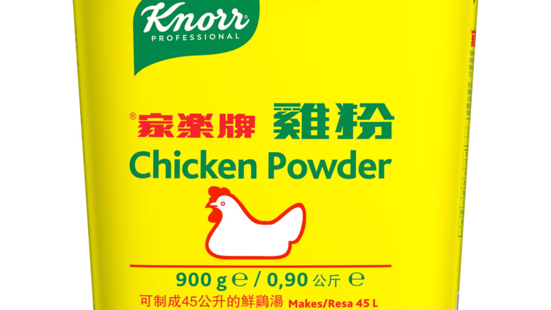 900 g Knorr asiatisk kyllingebouillon giver 45 liter færdig bouillon.