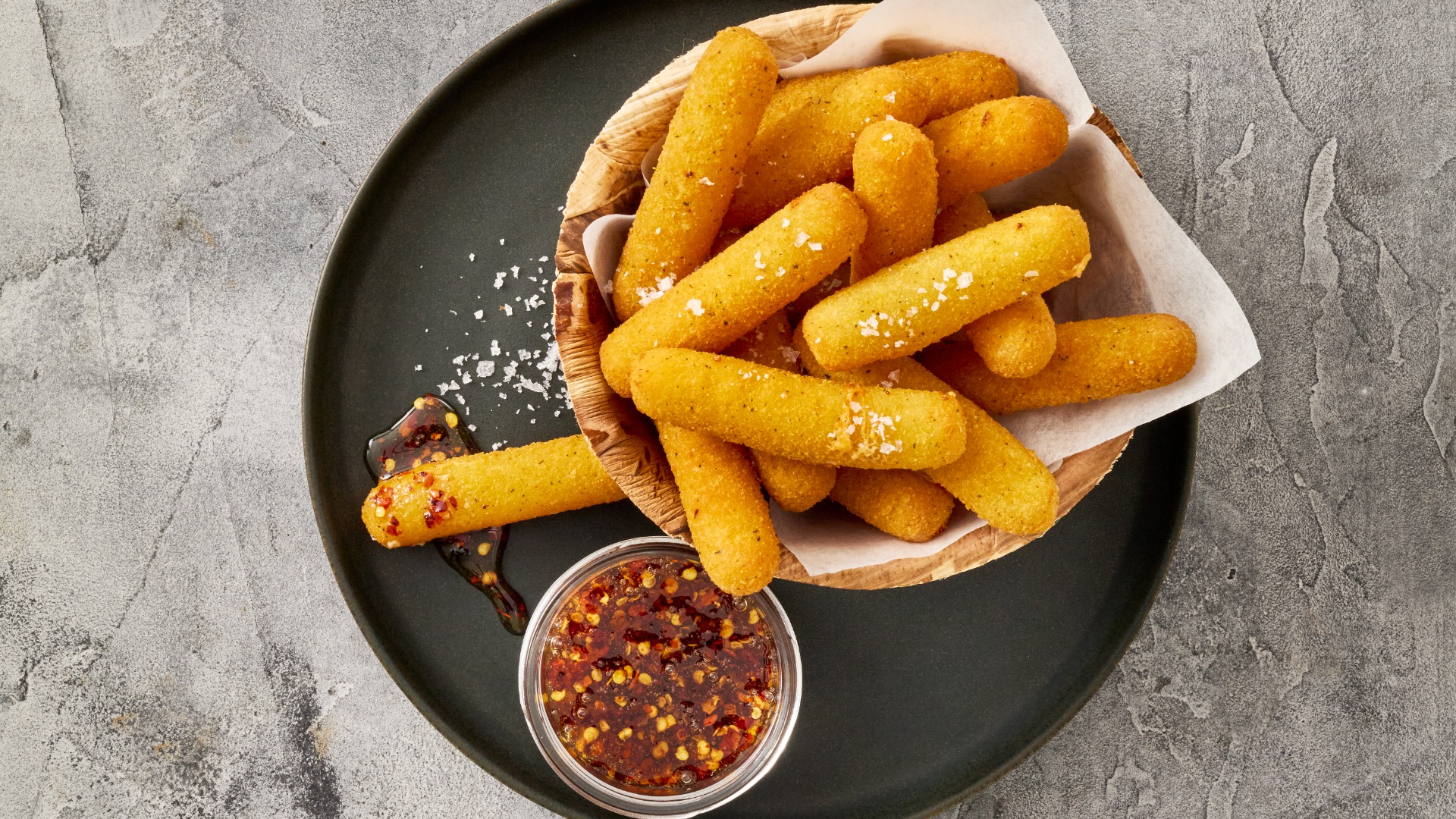 Vores Mozzarella Sticks byder på sprød, gylden panering udenpå og smeltende, cremet mozzarella indeni. Den perfekte kombination af crunch og fyldig ost gør dem til en uundværlig snack på enhver menu.