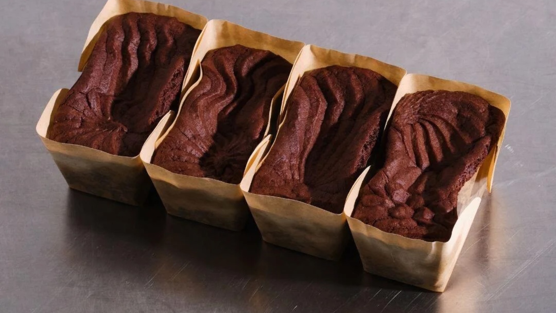 Intens brownie med chokoladestykker og tæt, fugtig krumme.