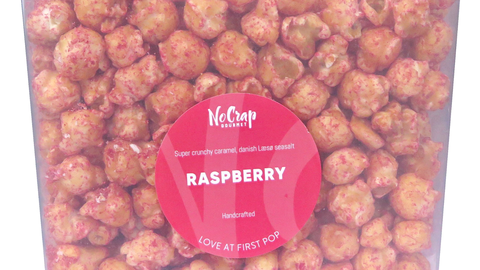 Lækre karamelpopcorn med hindbær til snack eller dessert