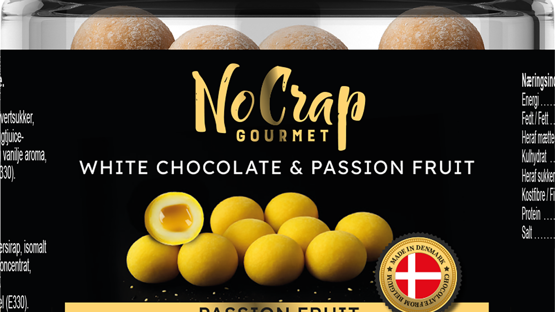 invertsukker, isomalt ﴾E953﴿, maltodextrin, 2,5% passionsfrugtpuré, 2,1%
