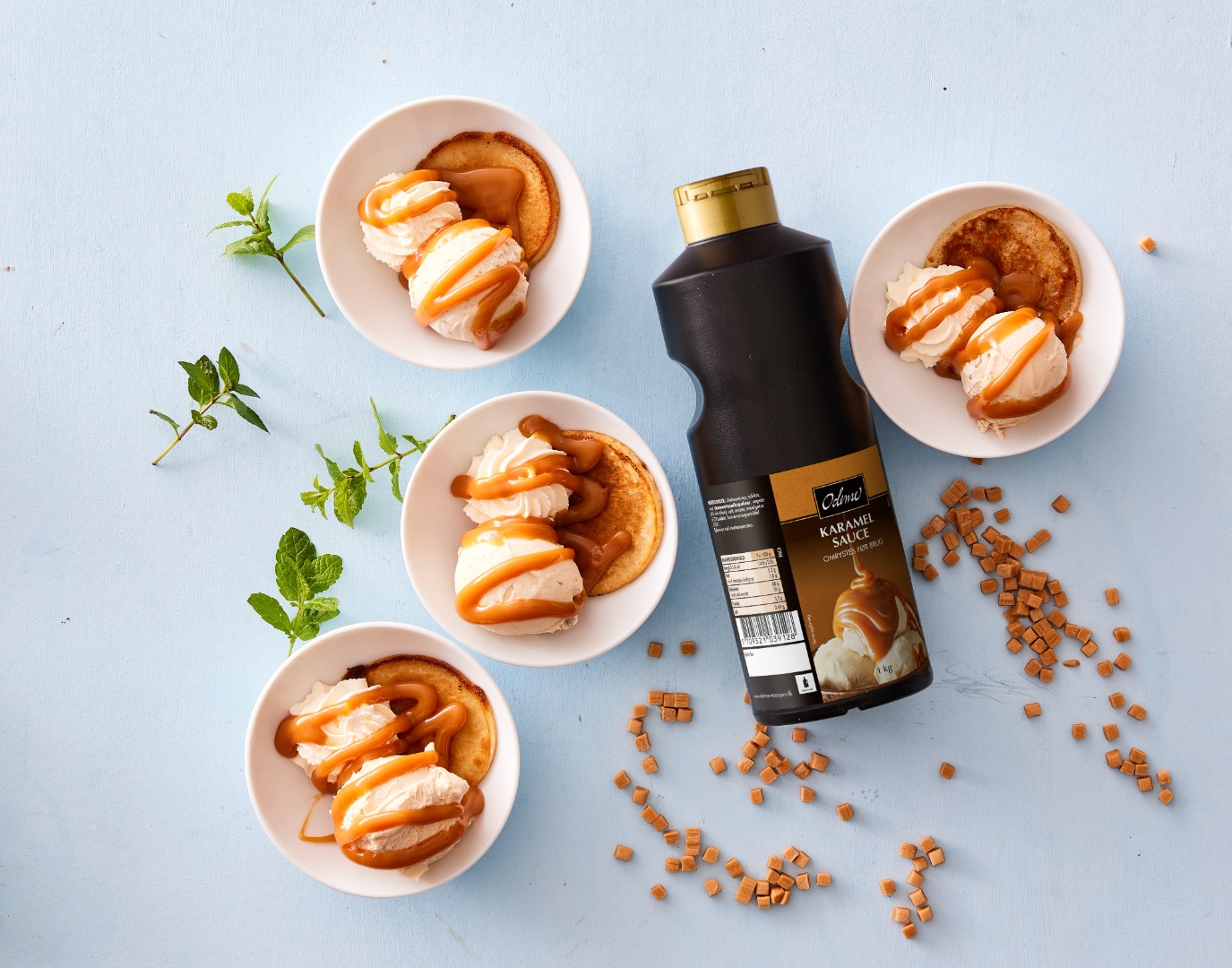 ODENSE Karamel Sauce er en cremet og lækker sauce med en intens smag af brændt karamel, der vækker minder om søde flødekarameller. Den er den perfekte smagsledsager til isdesserter, som topping på mousse og cheesecakes, samt til isdrikke som fx frappuccino. Karamelsaucen kan også anvendes til shakes, brunchvafler, pandekager eller som en lækker tilføjelse til snacks.
