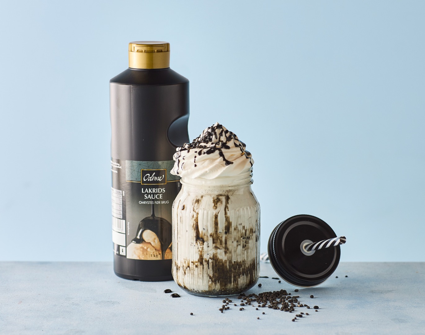 En lækker flydende cremet dessertsauce med lakrids, lige klar til brug. Dessertsauce med lakrids kan anvendes til alt fra isdesserter, topping på kager, pandekager, vafler eller til en lækker shake. Kræver omrystning før brug.