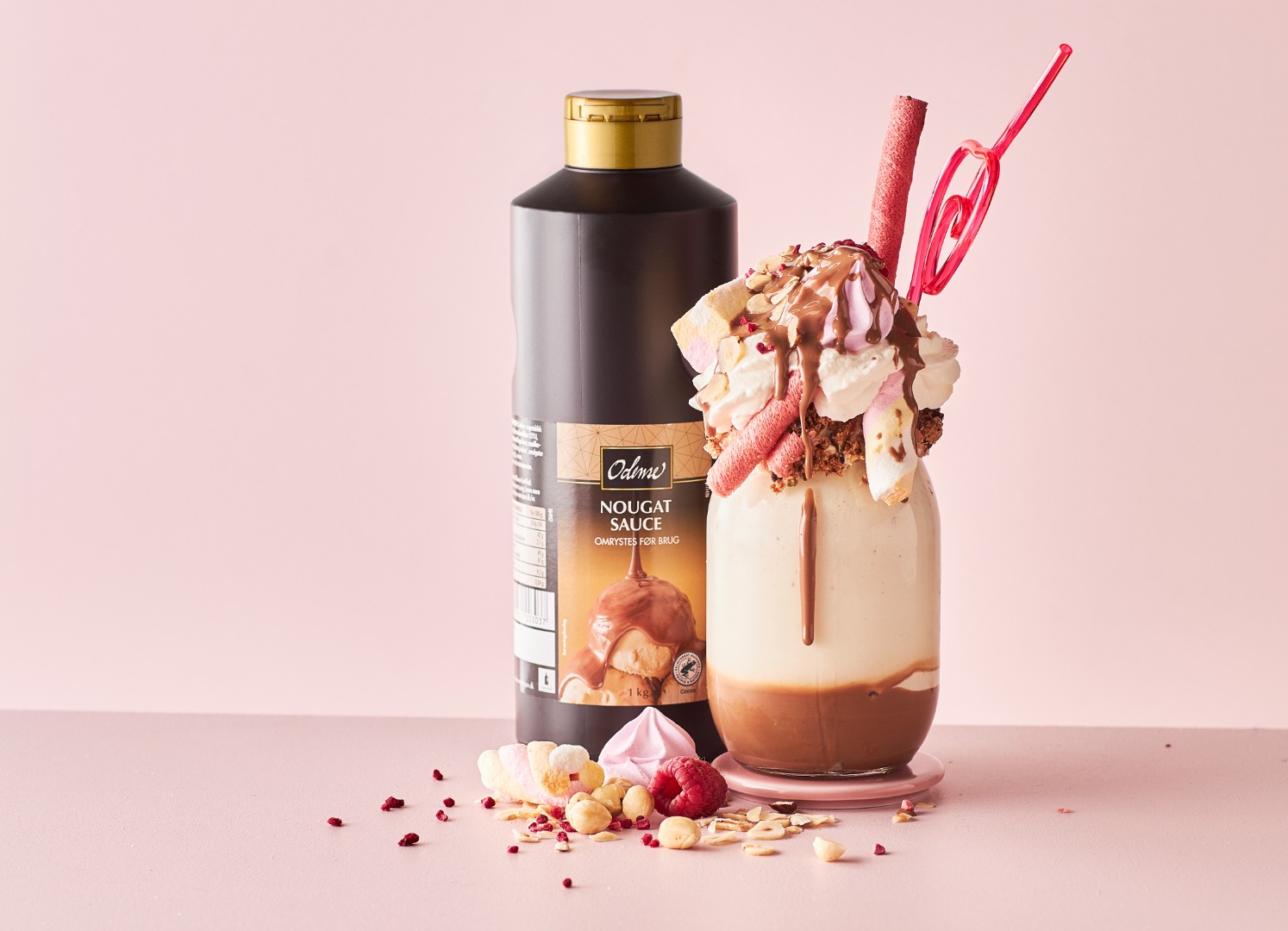 ODENSE Nougatsauce er en cremet lysebrun dessertsauce med rig smag af hasselnødder. Serveringsklar ved stuetemperatur. Perfekt til isdesserter, milkshake, pandekager, kager og desserter som kan kombineres med nougatsmag. Skal omrystes før brug.