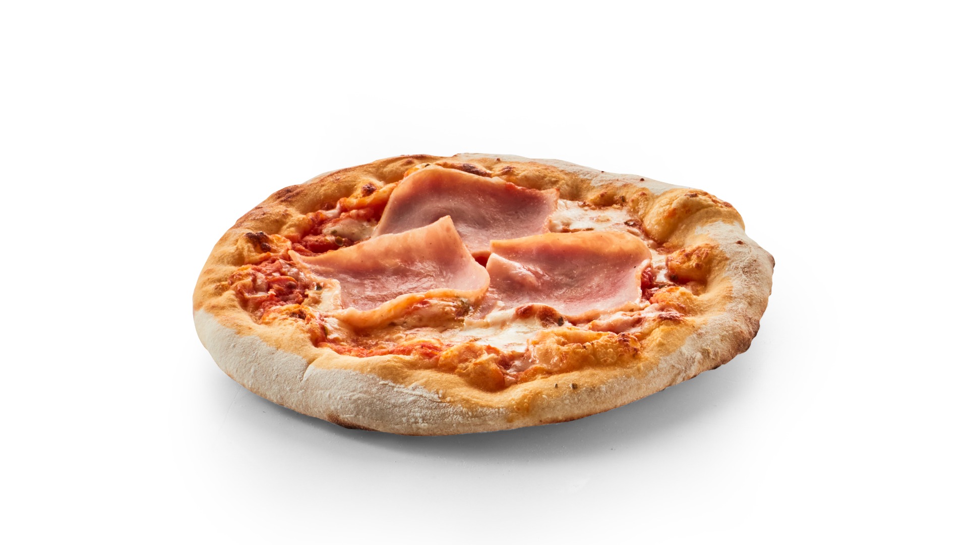 skinke og oregano. Pizzaerne er forbagte i stenovn