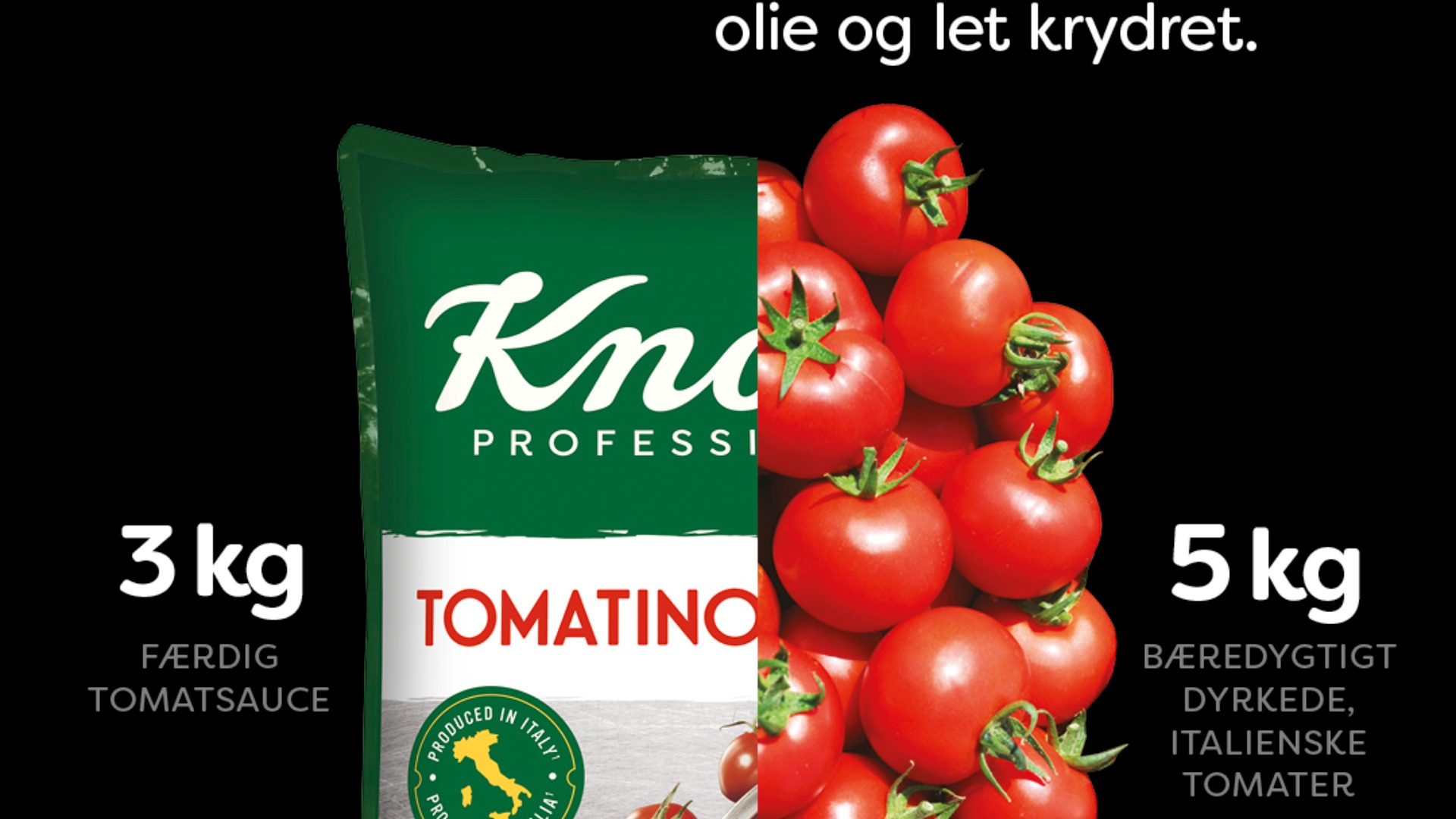 Dine tomatretter skal smage af tomat. Knorr Tomatino er en tæt italiensk tomatsauce lavet med 93 % solmodne, bæredygtigt dyrkede tomater og tilsmagt med krydderier for at skabe den bedste base for dig i køkkenet. Den har en perfekt afbalanceret smag og tekstur og er meget drøj i brug. Perfekt som basis i alle pasta- og pizzaretter, gratiner og gryderetter.