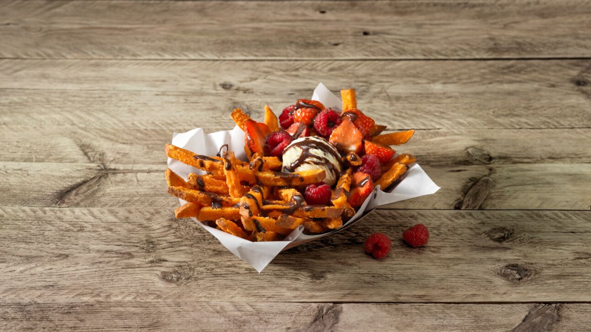 De lange, orange fries ser flotte ud på tallerkenen, skaber tydelig variation i ethvert sortiment og passer til nutidens mere bevidste valg. Sprøde udenpå og cremede indeni. Ud over at de kan serveres i det saltede køkken , smager sweet potatoes fantastisk med en god vanilje is.