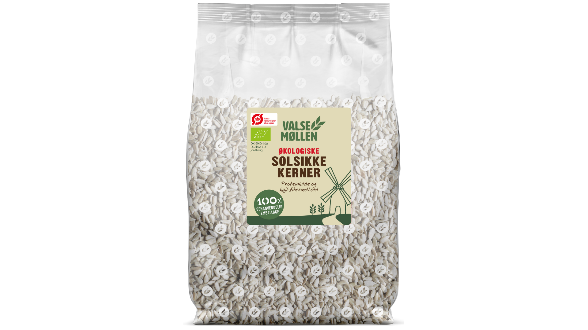 Valsemøllen Økologiske Solsikkekerner er en god proteinkilde med et højt fiberindhold. Brug solsikkekerner både bagværk, müsli og salater, hvor de giver en nøddeagtig smag og lidt ekstra at tygge på.