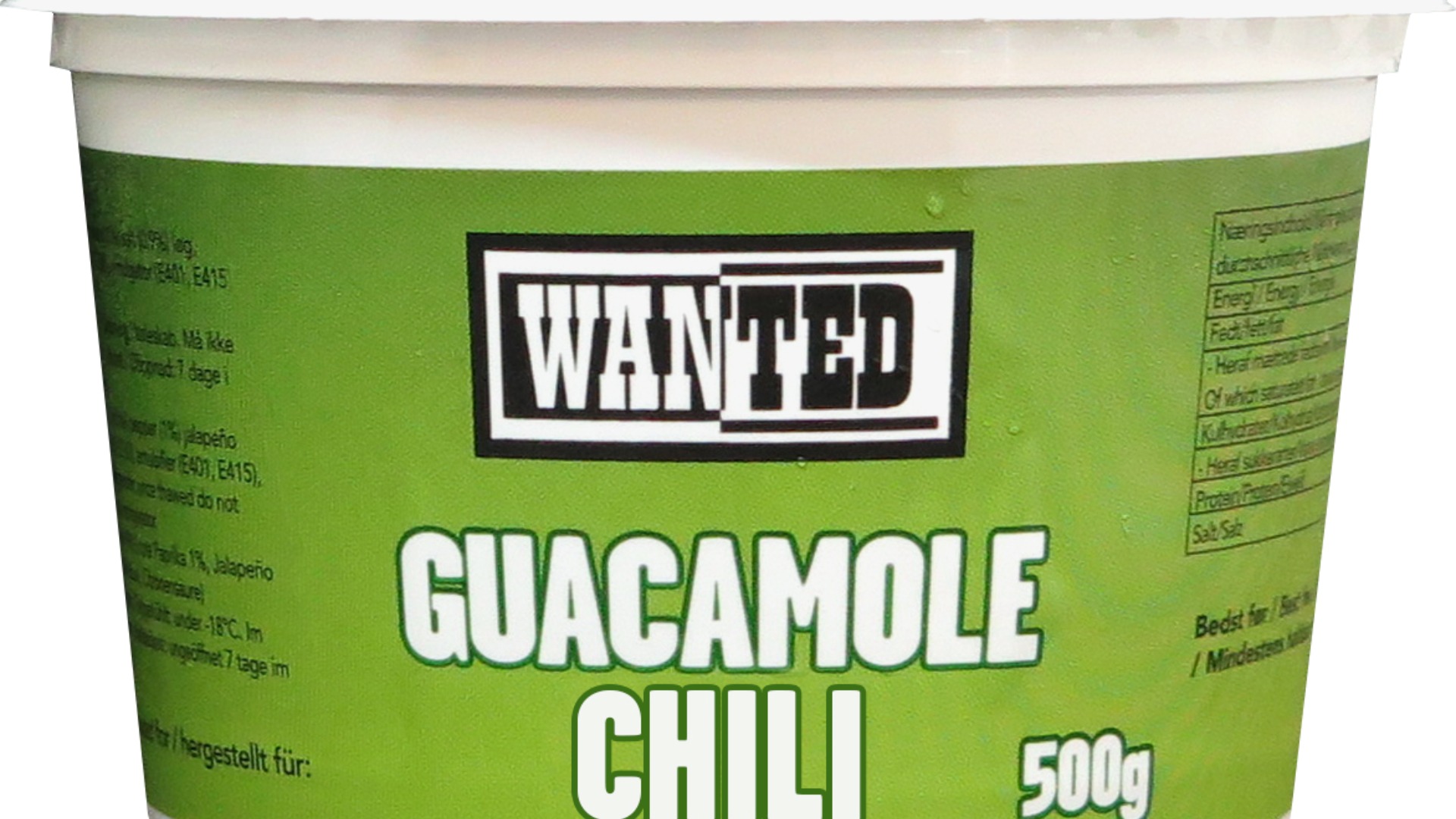 Ingredienser: Avocado ﴾95%﴿, lime juice ﴾3%﴿, Salt ﴾0,9%﴿, løg,