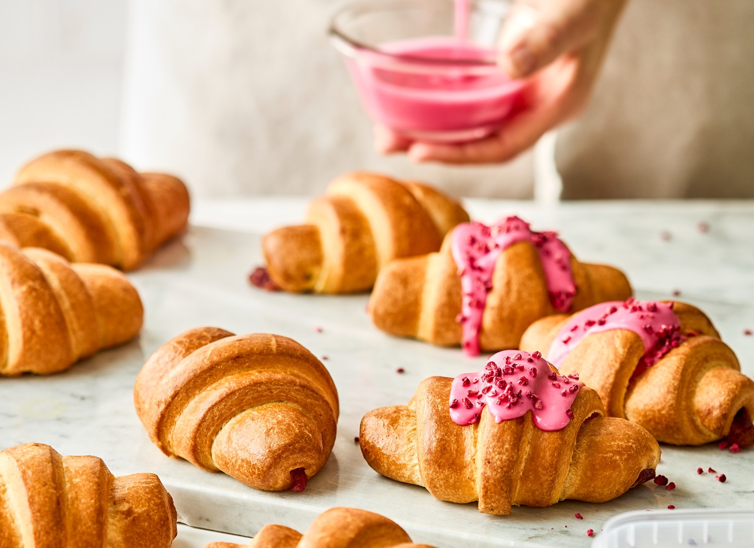 TIP: Top eventuelt med hvid glasur og frysetørret hindbær for et lyst og appetitvækkende look, eller farv glasuren i forbindelse med højtider og temaer for ekstra synlighed og mersalg.